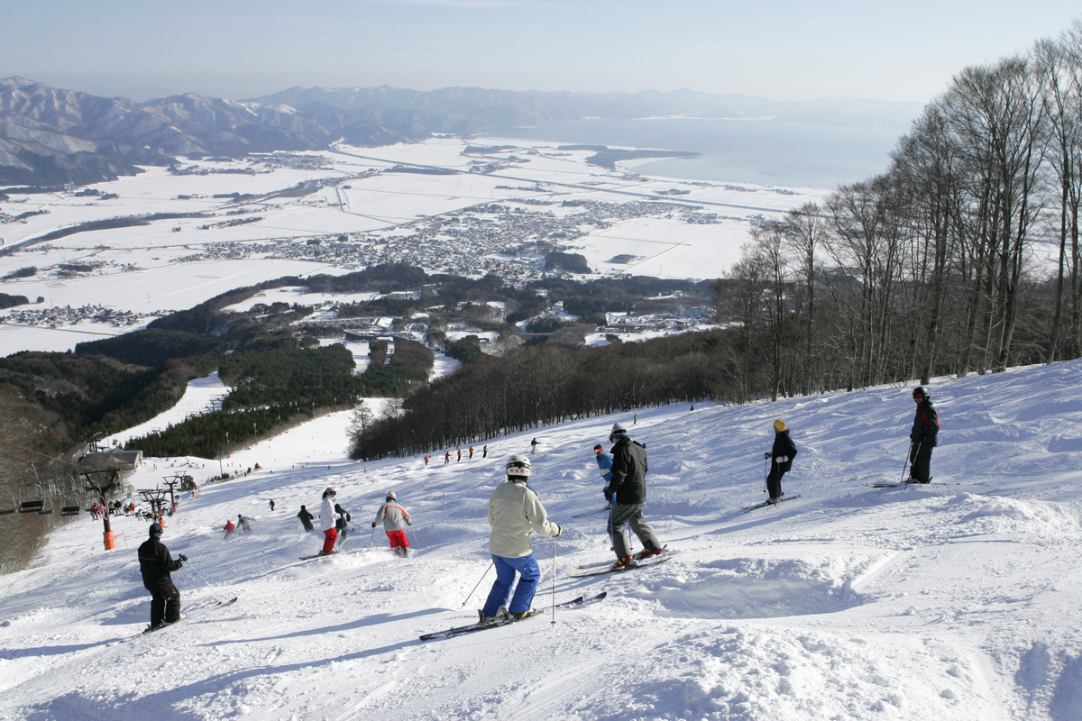 The grand views of Lake Inawashiro and Mt. Bandai drawing in closer as you make your way down the mountain makes for an exhilarating experience where the thrill of skiing is magnified by the majestic natural surrounds. The view of Lake Inawashiro is not to be missed.