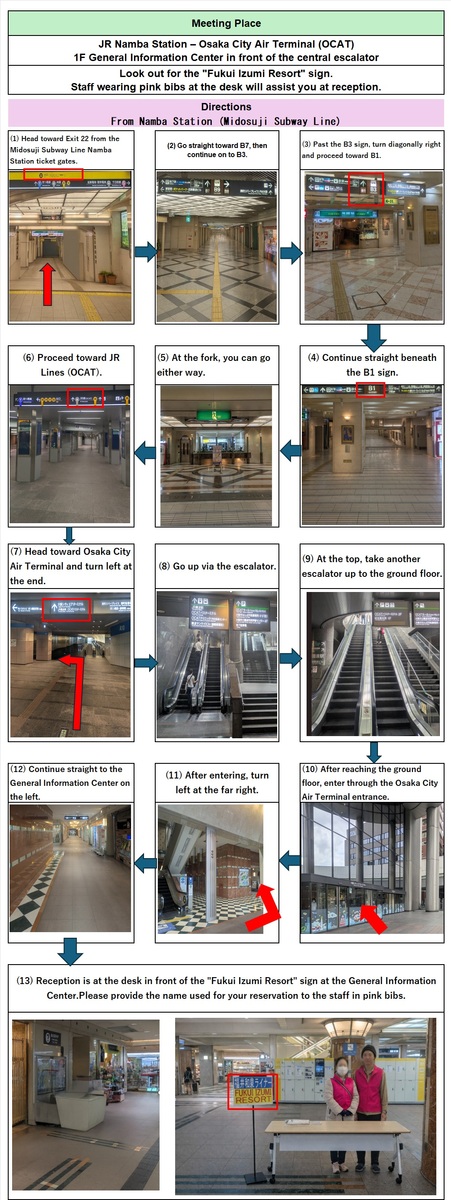 Outbound bus departure time: 7:45am (Meeting time: 7:30am) Osaka Namba OCAT ⇒ Arrival at Fukui Izumi Ski Resort at 11:40am