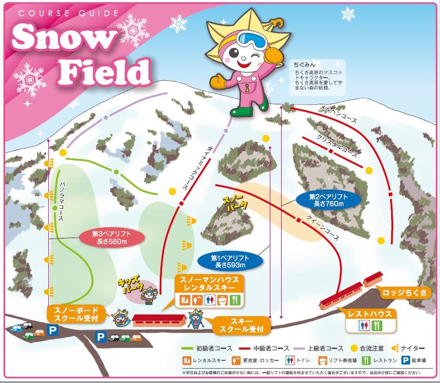 Chikusa Kogen Ski Resort, equipped with fully operational snow machines even in case of snow shortages (snow machines may be non-operational depending on temperature), offers a variety of courses ranging from beginner to advanced levels, including the Panorama Course and Dynamic Course. The resort also boasts a well-equipped Kids' Park, perfect for little ones to enjoy. Night skiing is available as well. Yoru Chikusa (night skiing) runs until either 9:00 PM or 11:00 PM. (Please refer to the resort's official website for the operating hours calendar)
