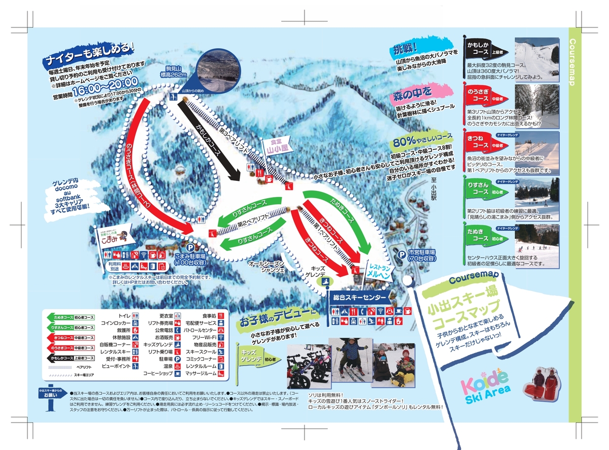 A ski resort with an excellent view, perfect for skiing and snowboarding for the first time! The whole family can enjoy skiing and snowboarding while gazing at the magnificent mountain range. After a day of skiing, you can relax at the adjacent hot spring "Miharashi-no-Yu Komami", a one-minute walk from the slopes.